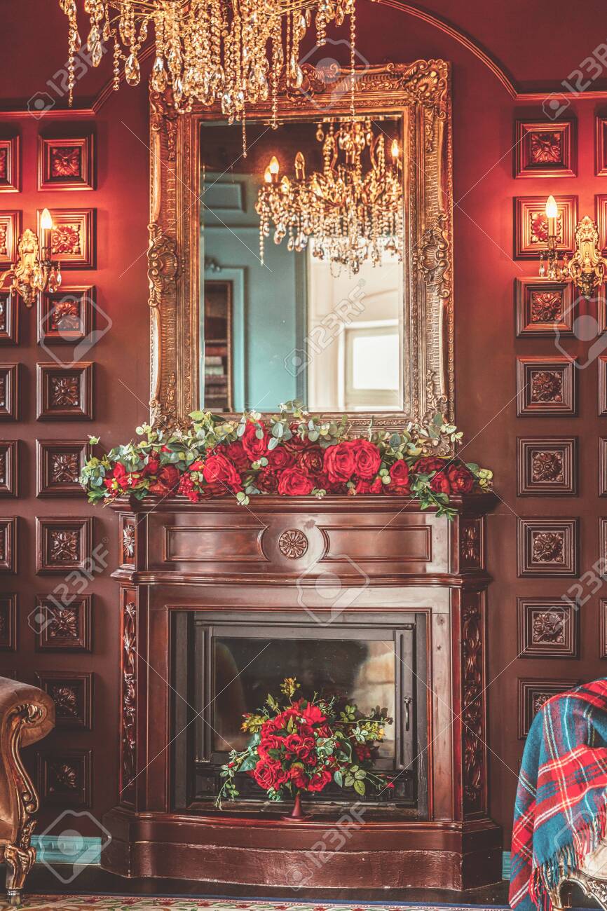 Classic Christmas New Year Decorated Interior Room Home Library With Fireplace Christmas Tree With Red Ornament Decorations Modern Classical Style Interior Design Apartment Christmas Eve At Home Stock Photo Alamy Low Cost Simple Home Interior Design