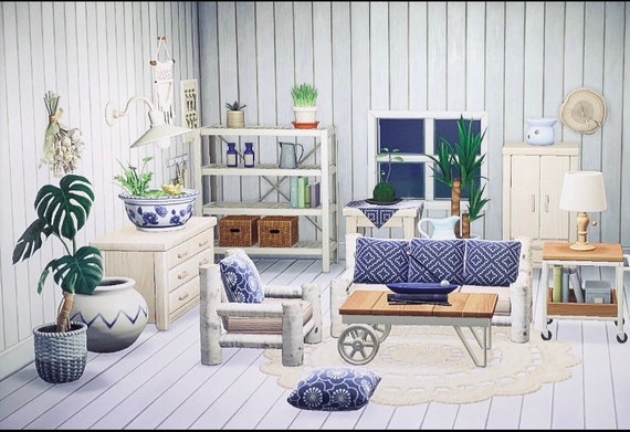 Animal Crossing Acnh Blue Boho Chic Living Room Etsy Interior Design In Homes